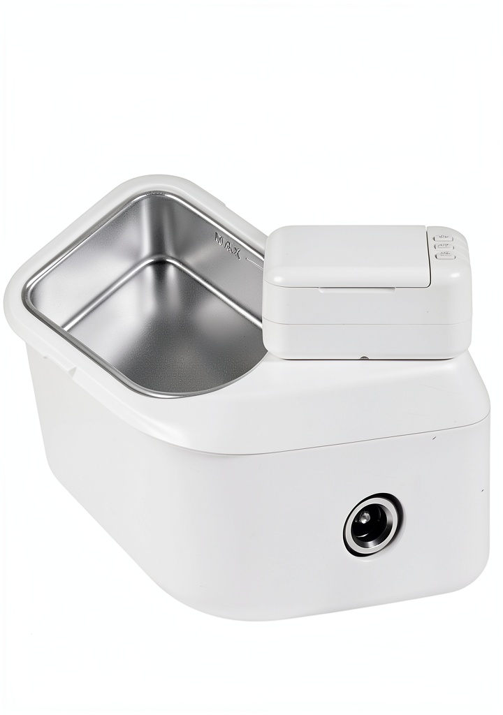 • Compact ultrasonic design with 24W power and 200 mL volume for effective stain removal